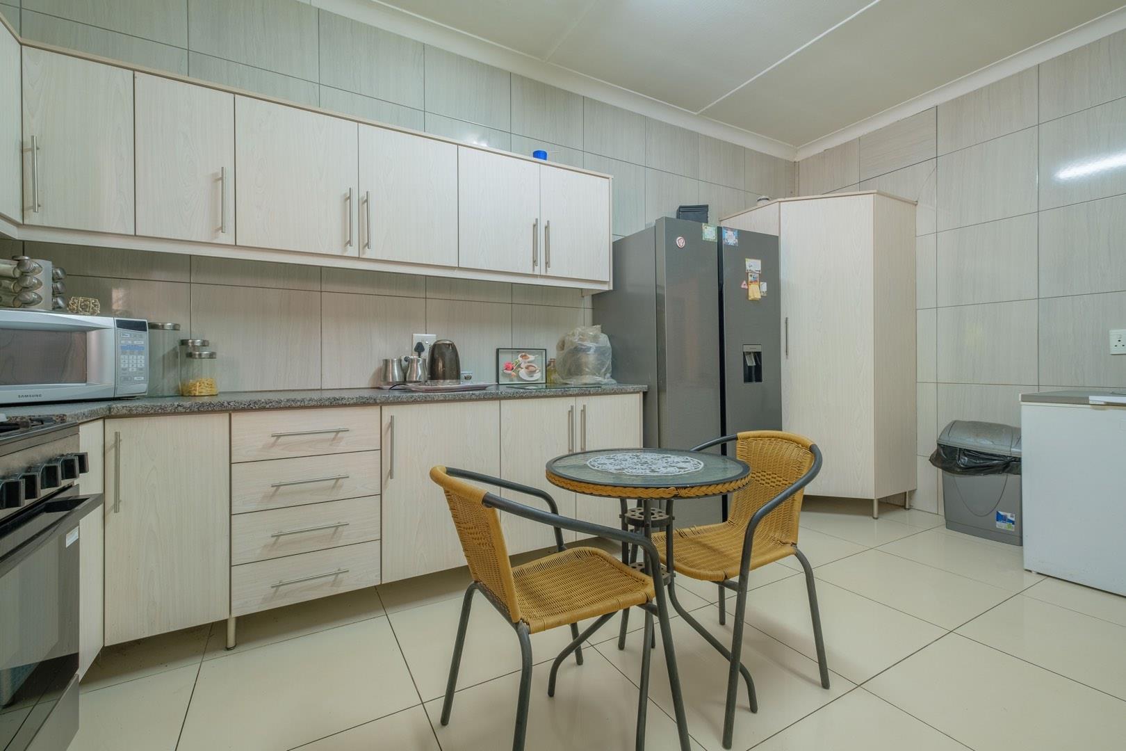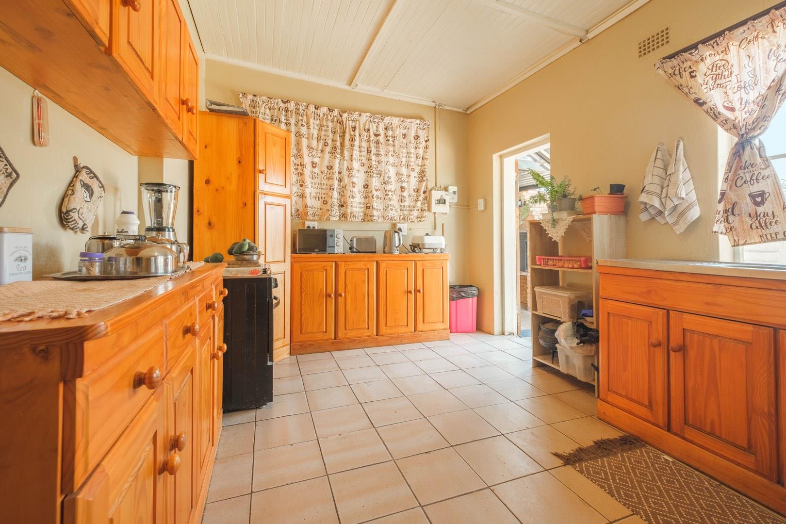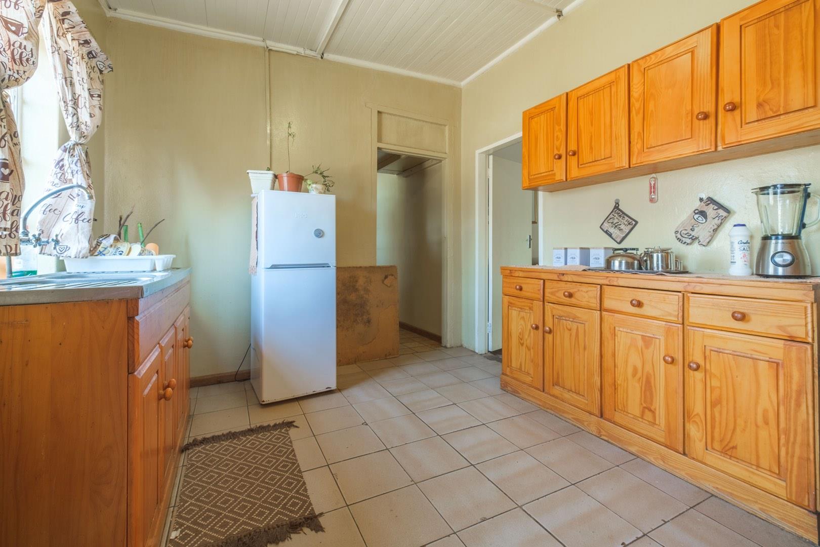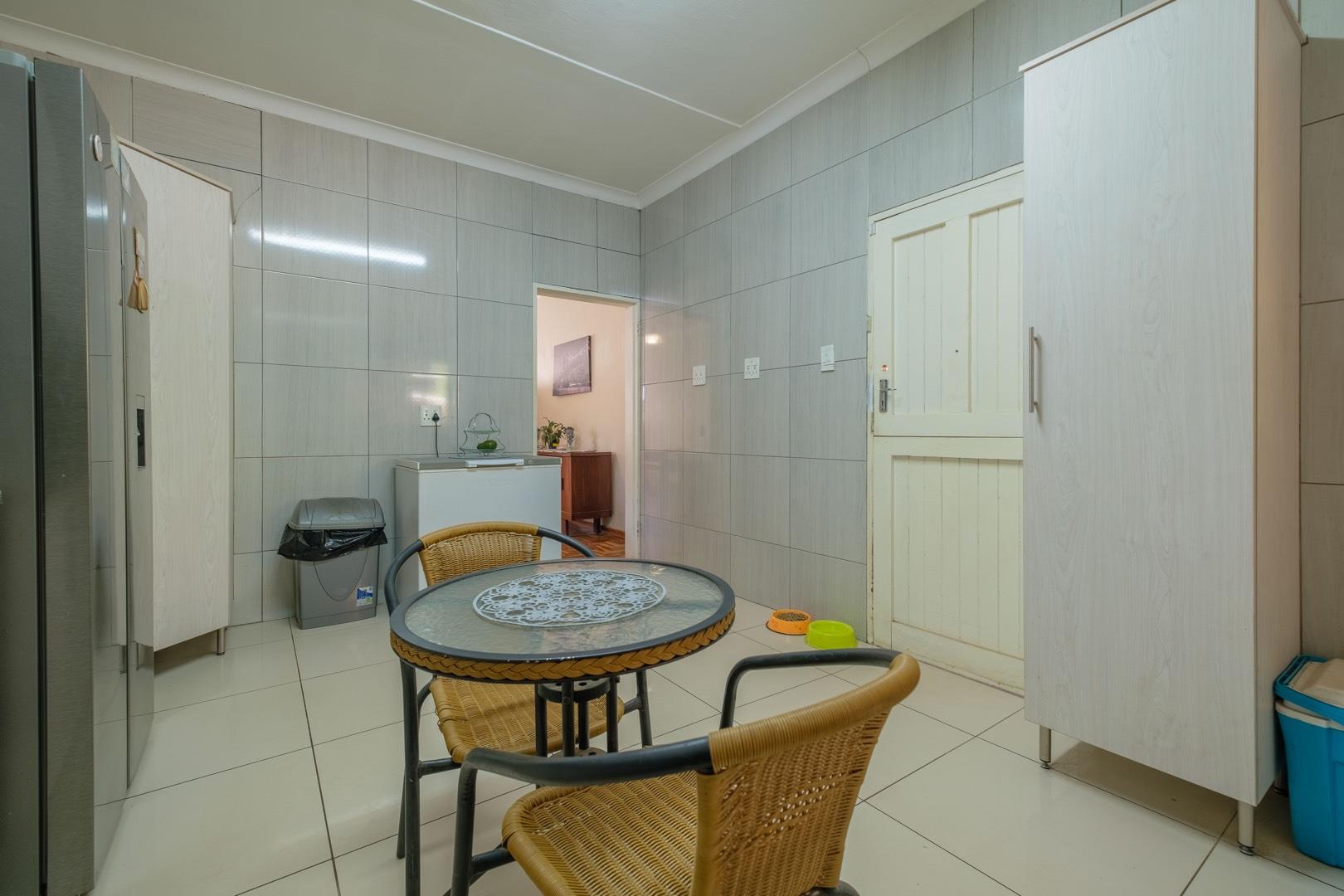 A modern kitchen that has been redone, melamine counter tops, a pantry, double fridge space and a separate wash area