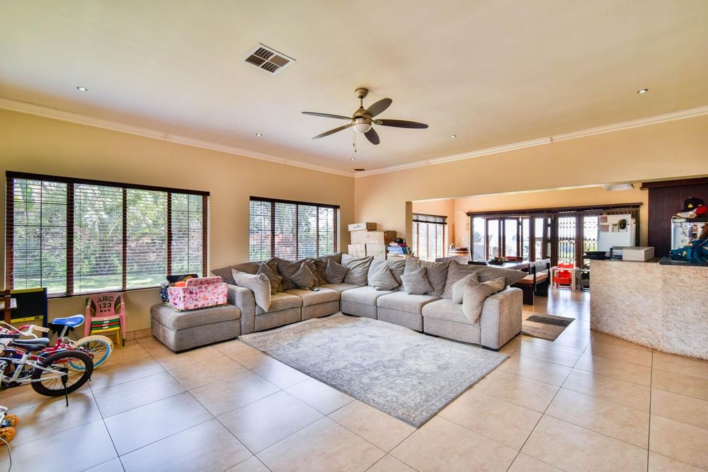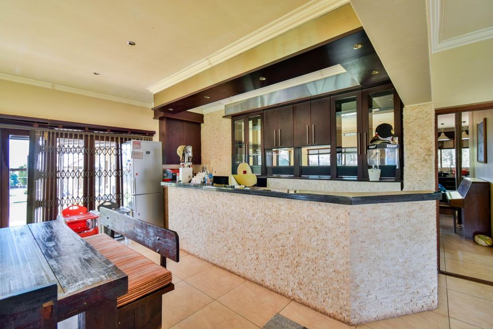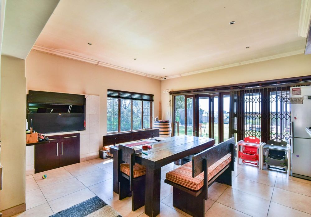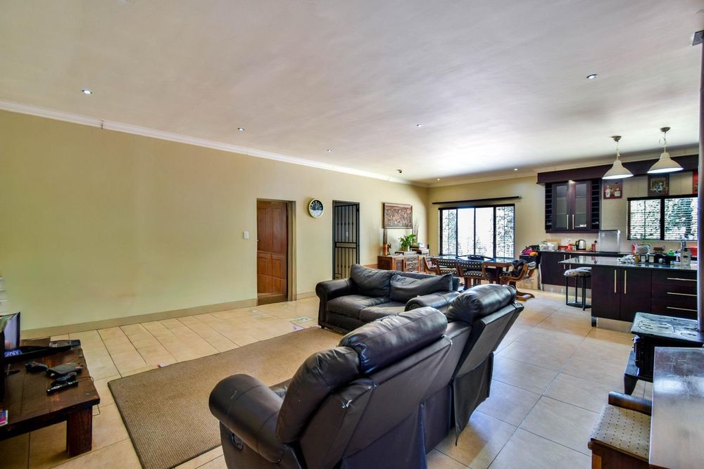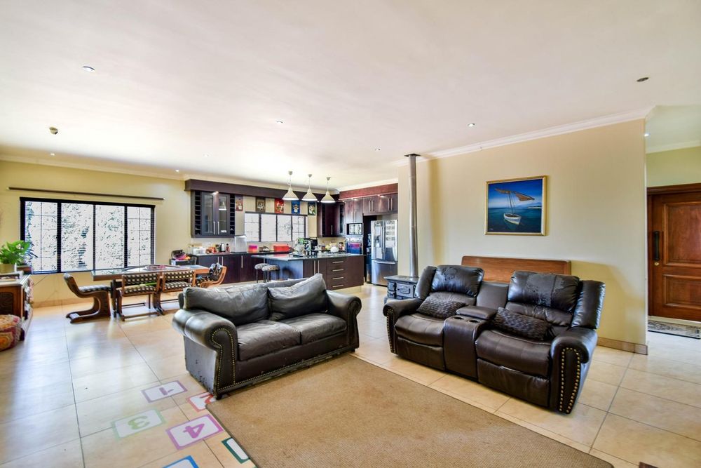-Large open-plan living areas and an enclosed patio with built-in-braai and a built-in bar