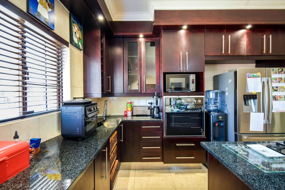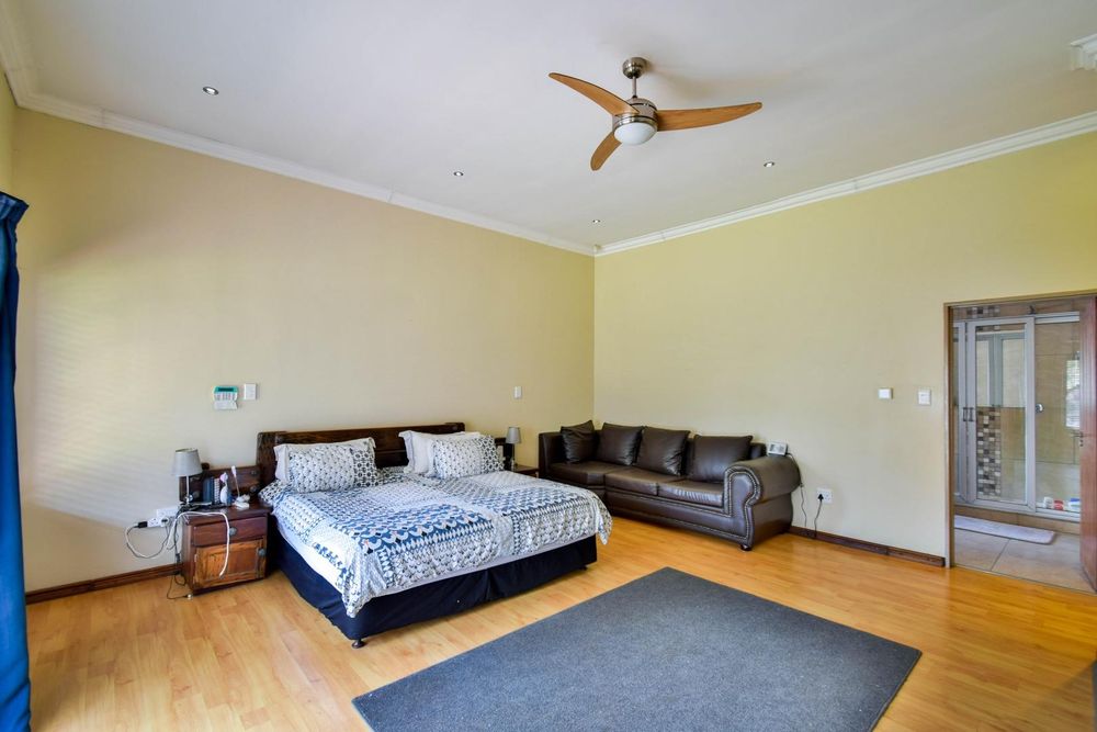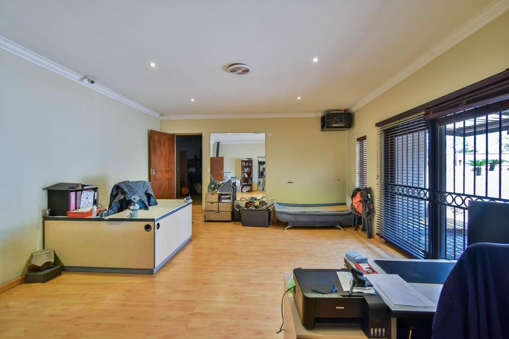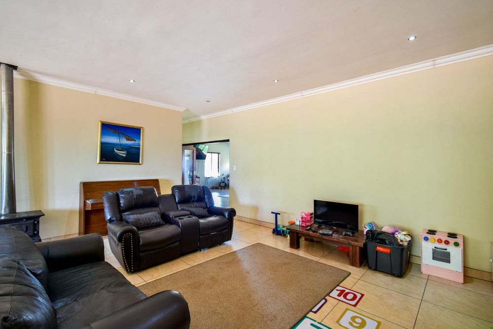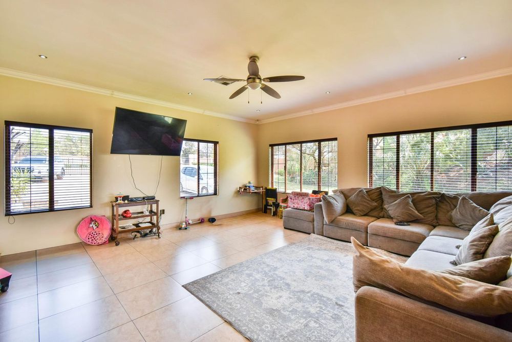 -Large open-plan living areas and an enclosed patio with built-in-braai and a built-in bar