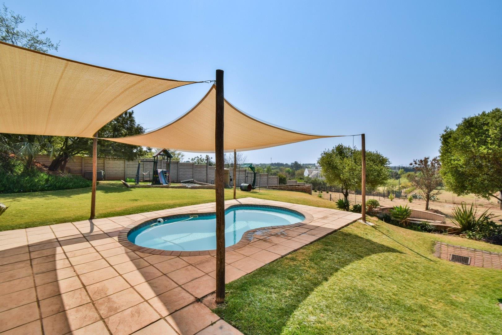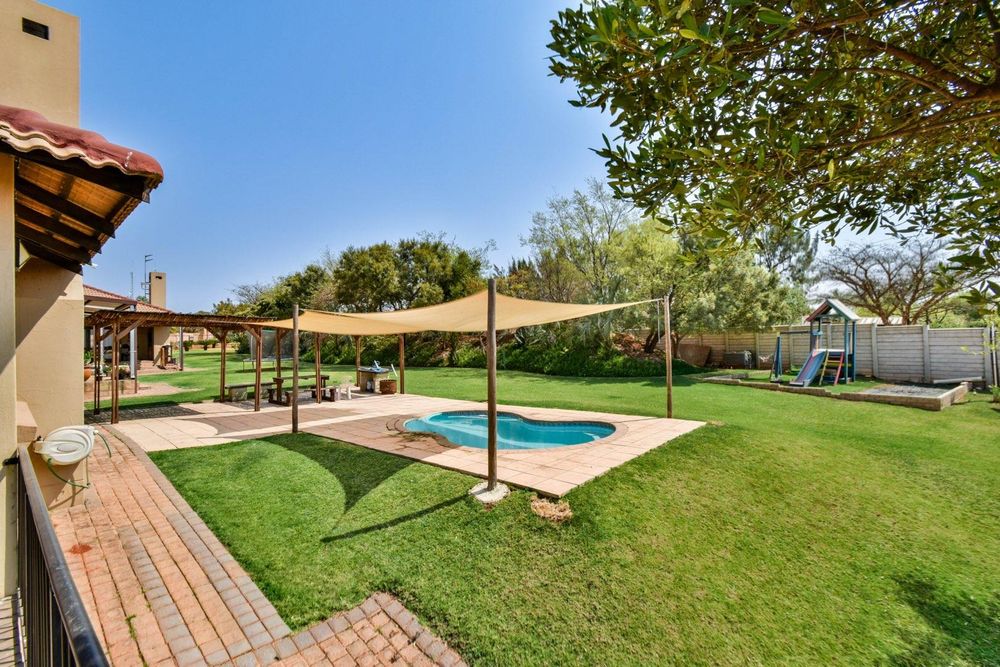 Second pool with covered patio and ample garden space
