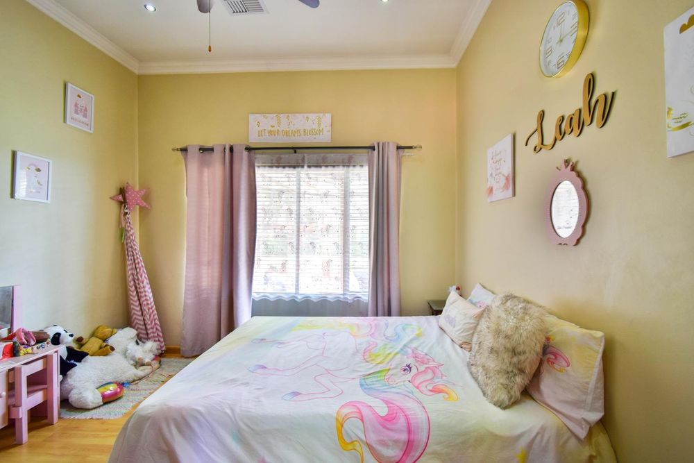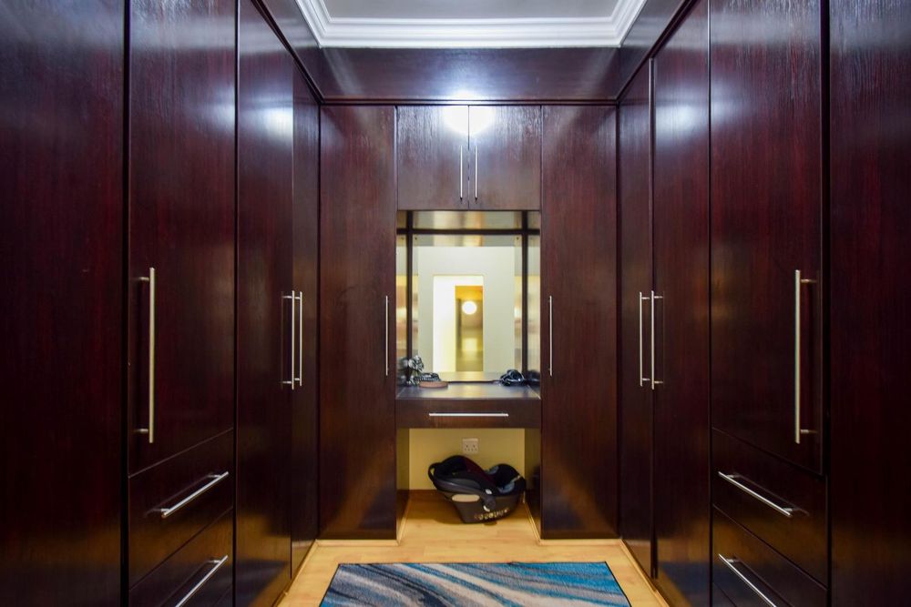 -Down the passage we have ample linen cupboards, the four bedrooms with built-in cupboards