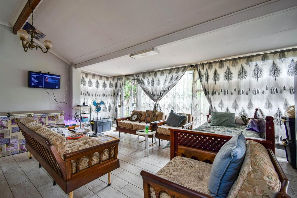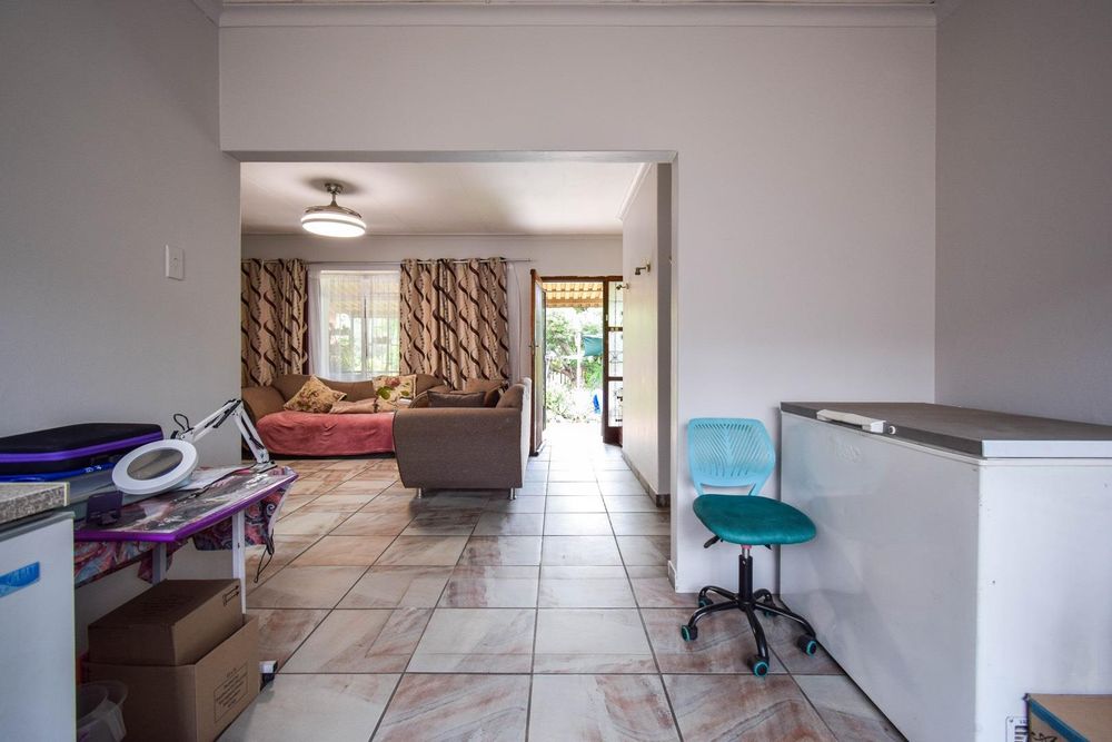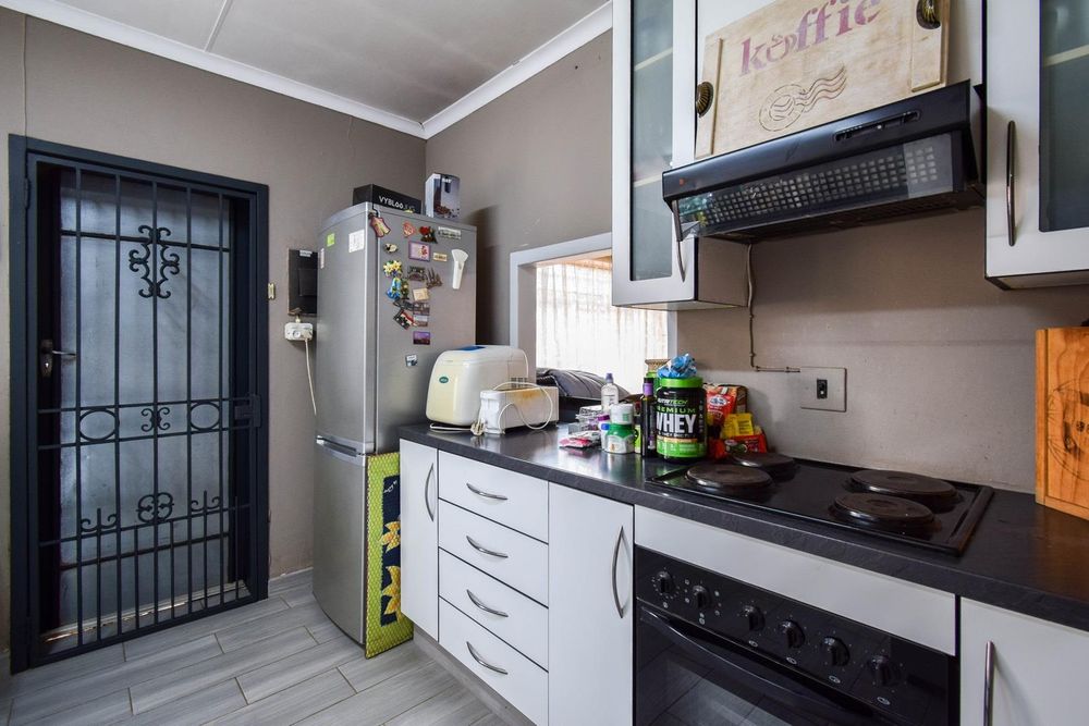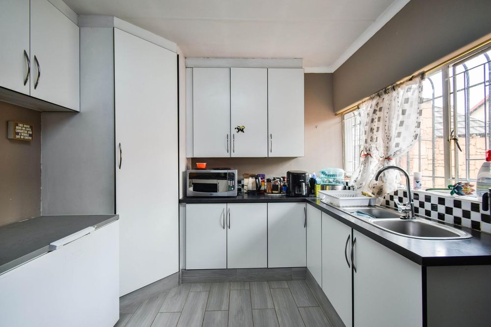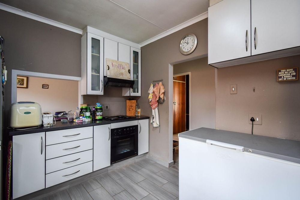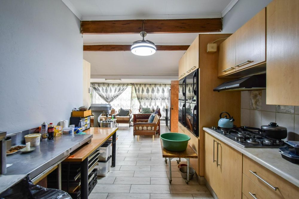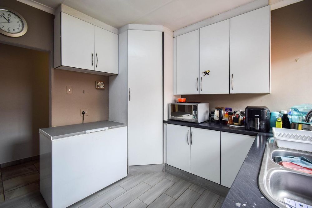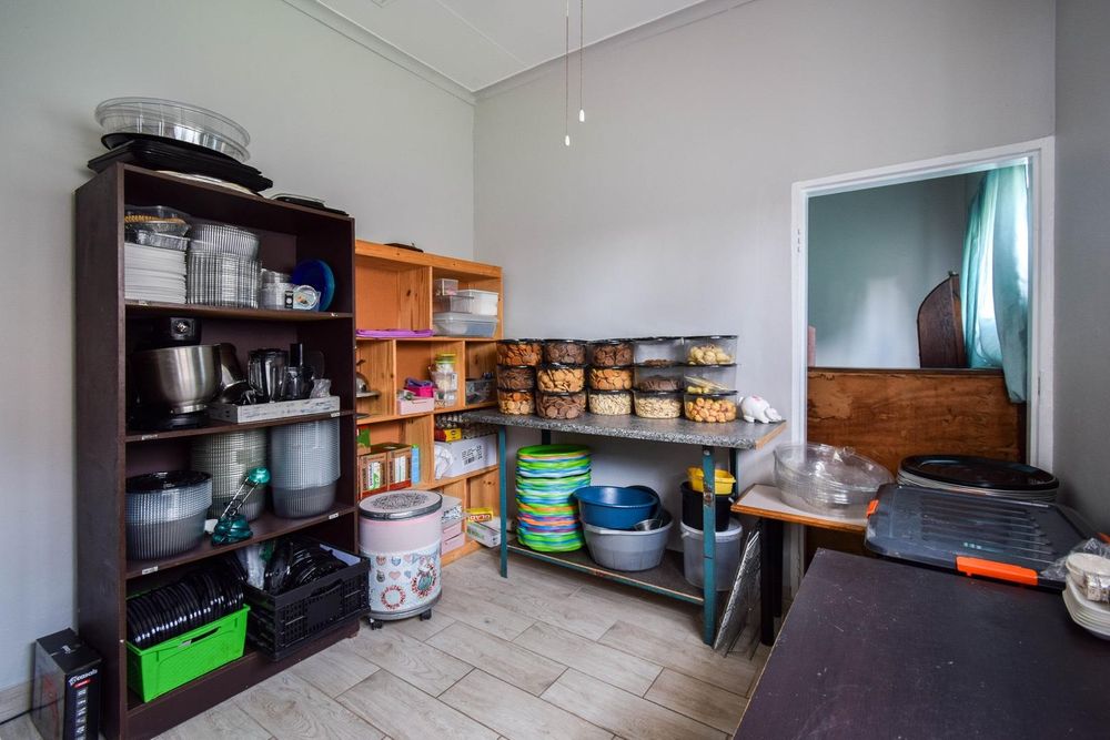 -Kitchen with built-in cupboards, pantry, single fridge space and chest freezer space