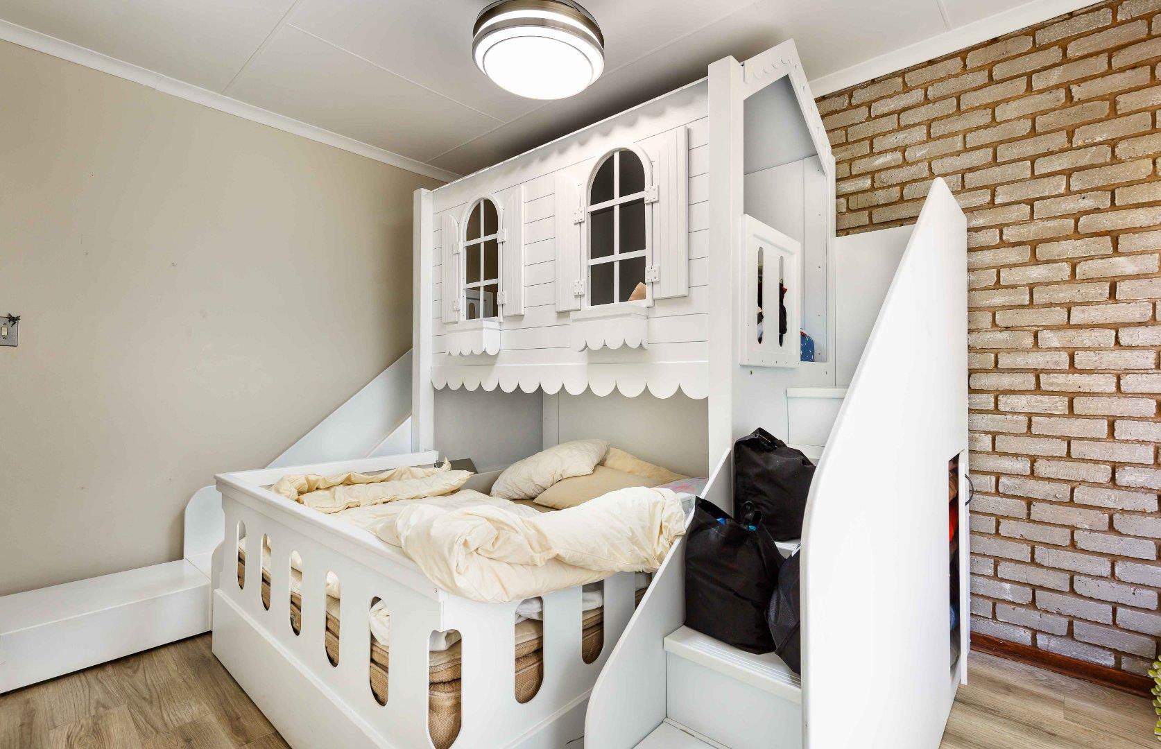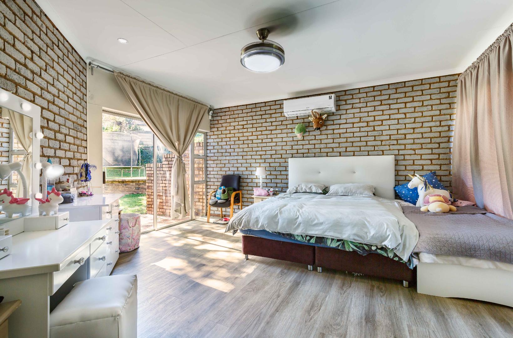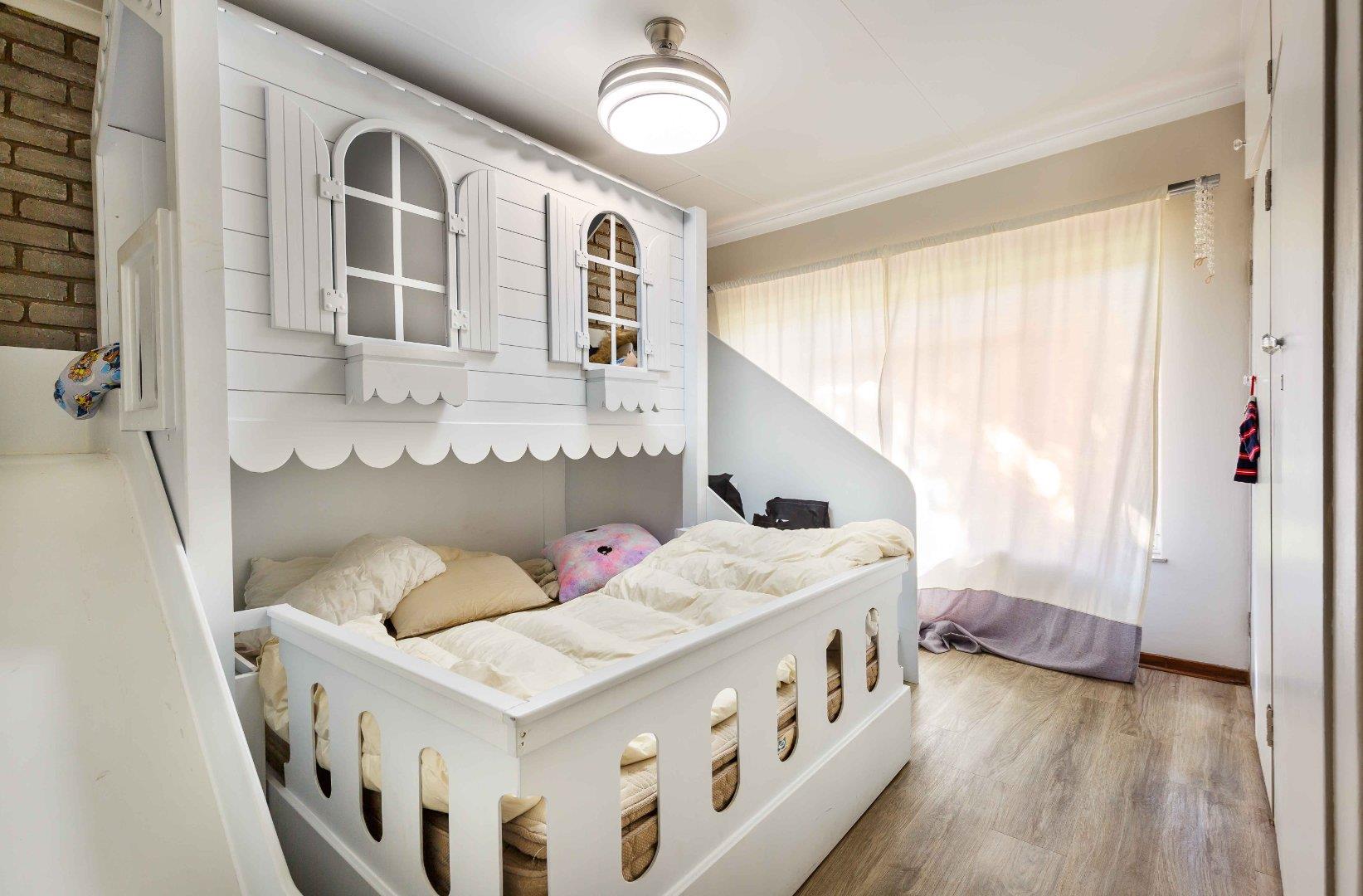 The main bedroom offers plenty of space, ample cupboards, a ceiling fan and a modern, full en-suite bathroom