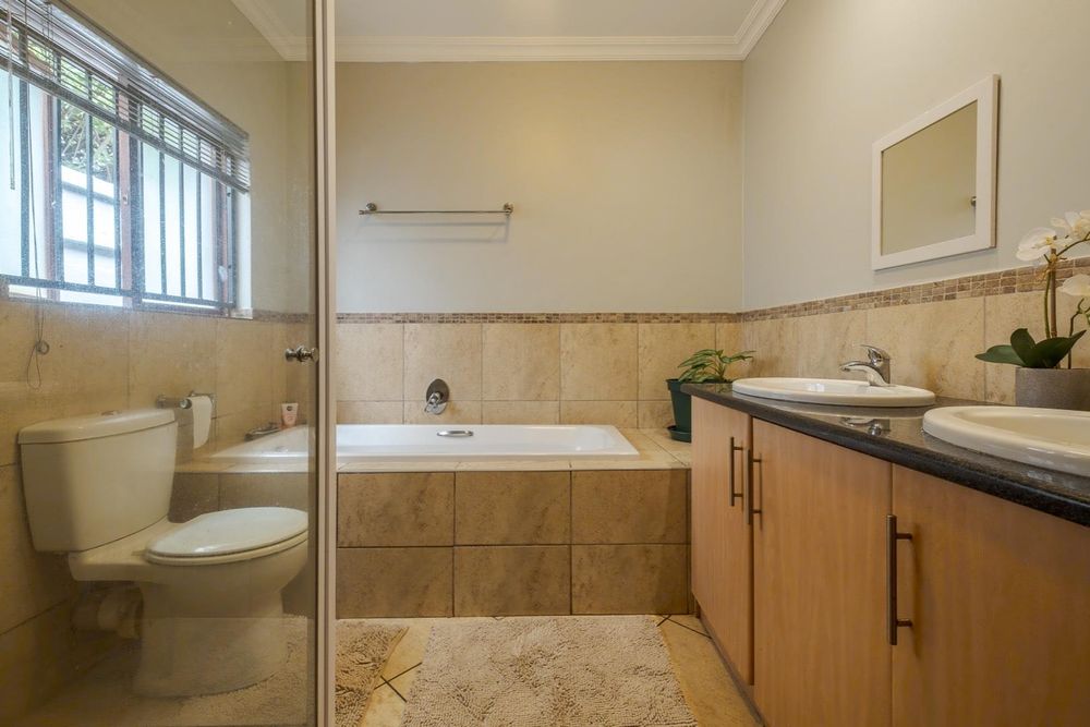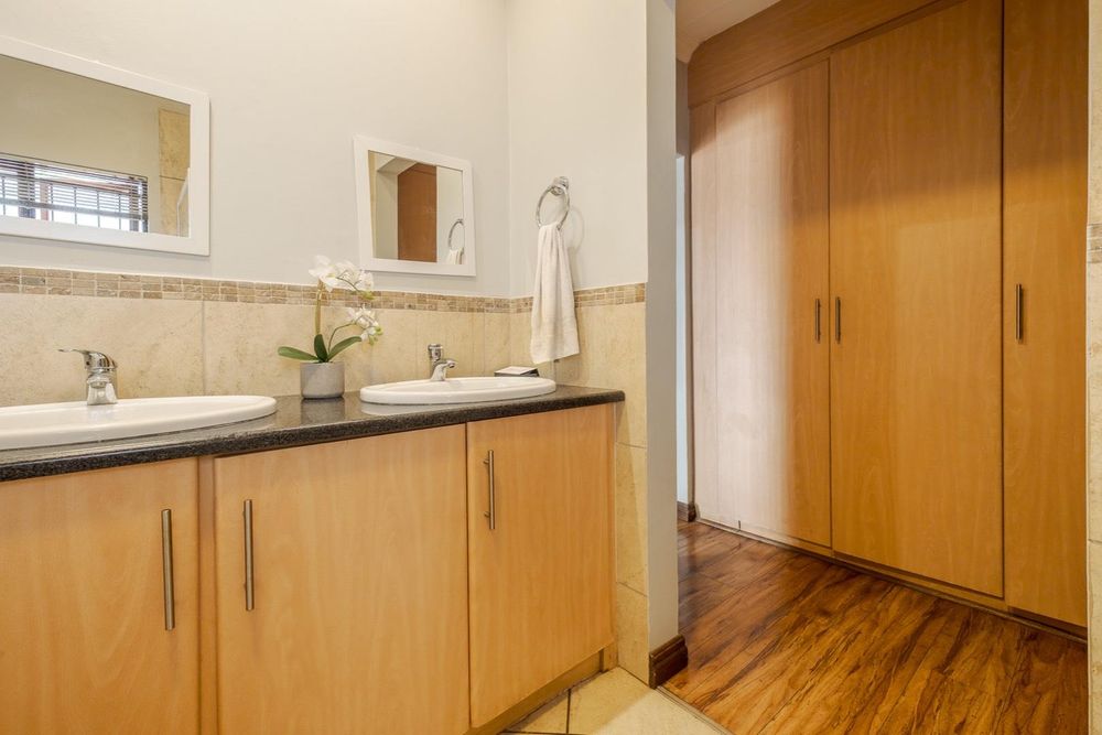 Open-plan kitchen with granite counter tops, ample built-in cupboards, separate scullery (2 appliances/double fridge space)