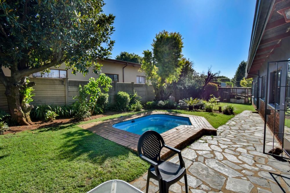 Lovely splash pool and a large wrap-around garden