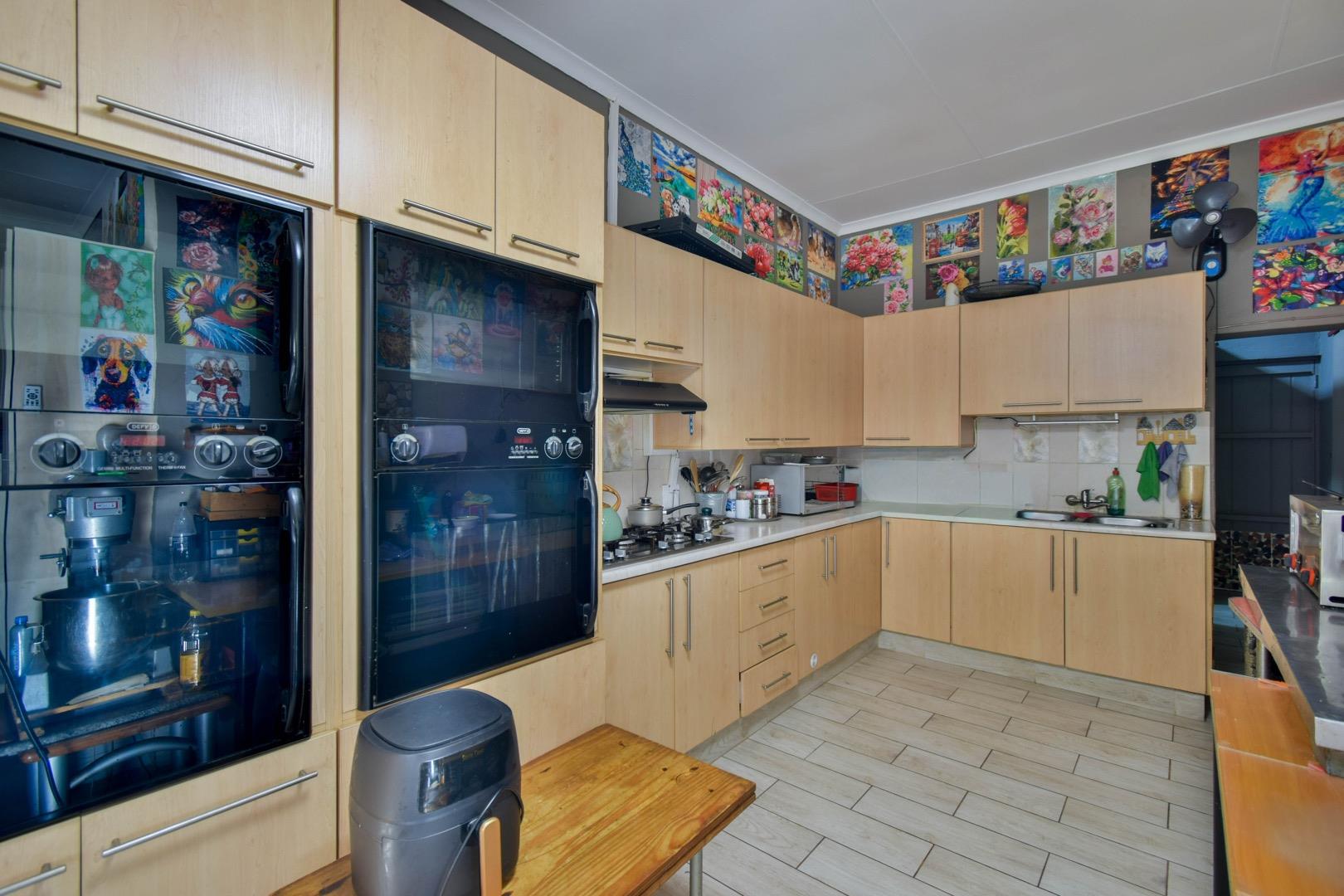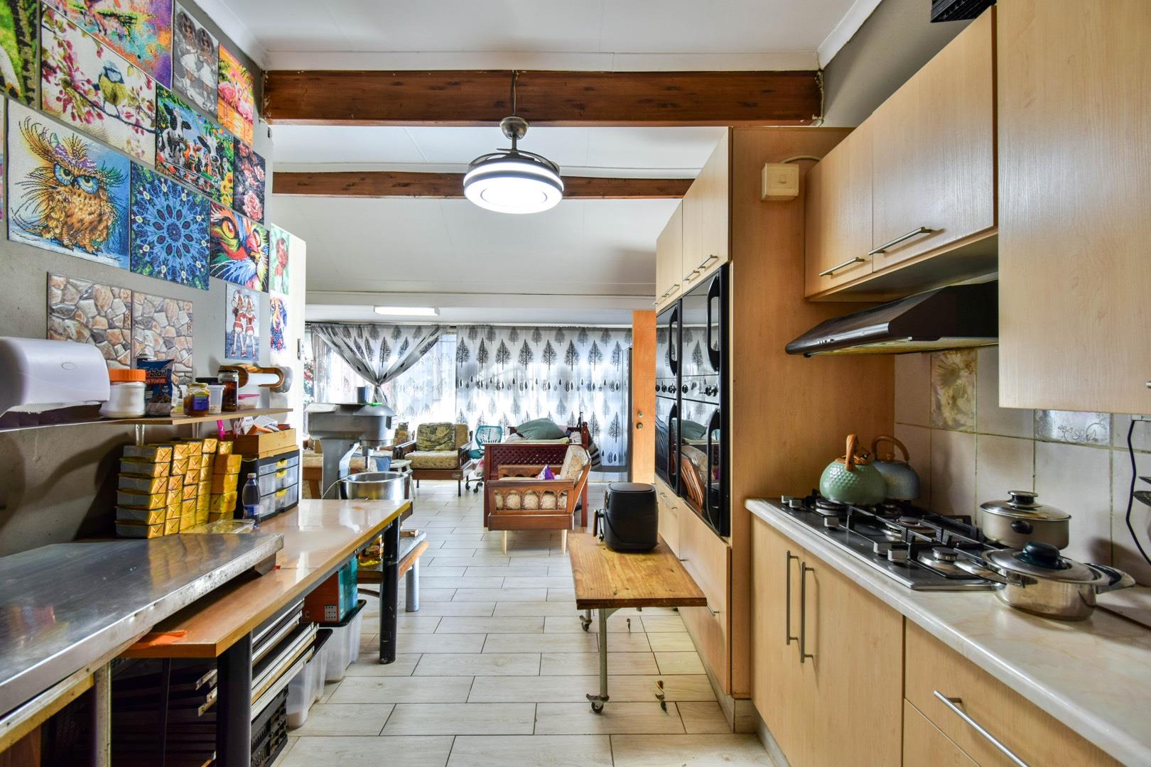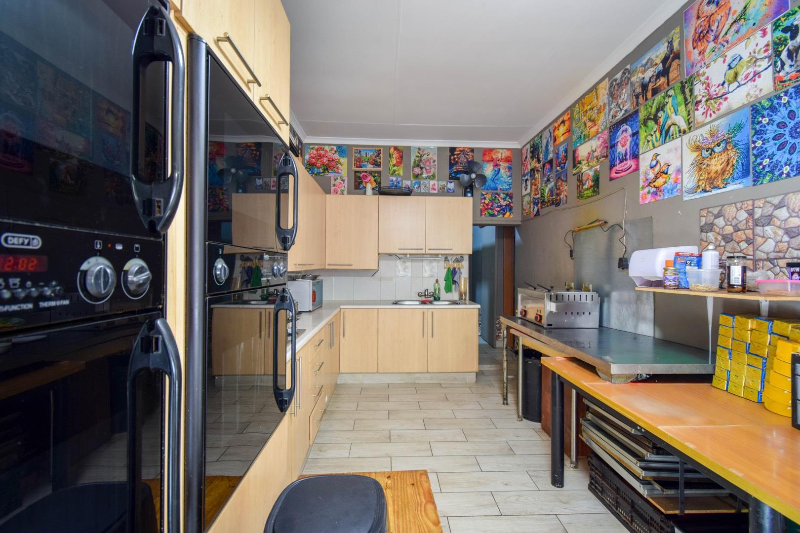 -Kitchen with built-in cupboards, pantry, single fridge space and chest freezer space