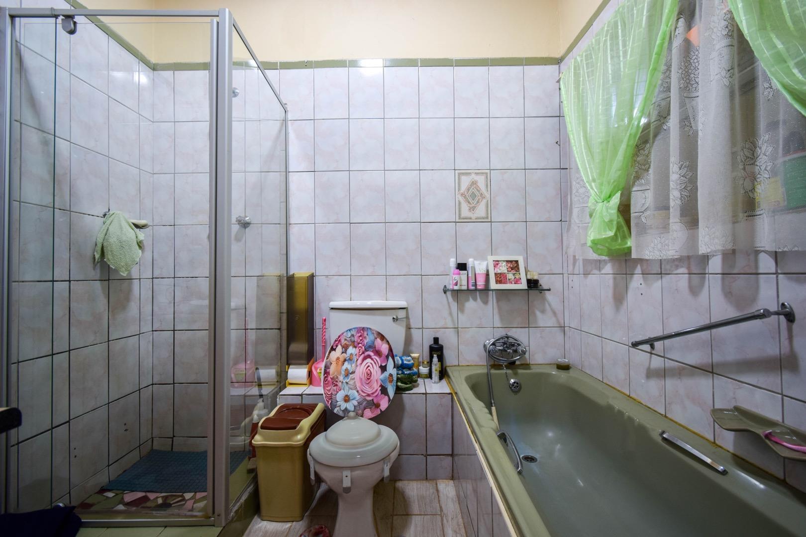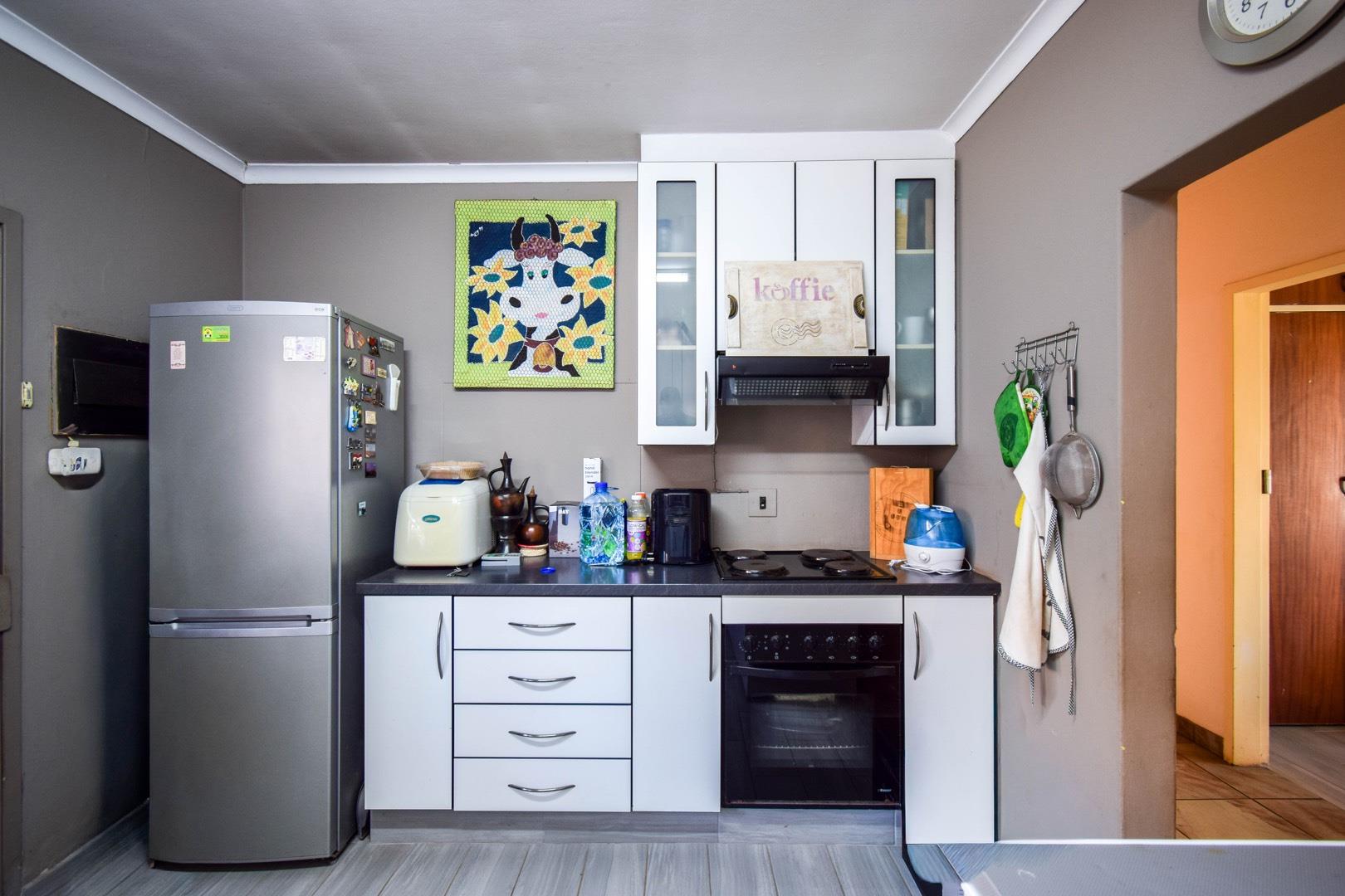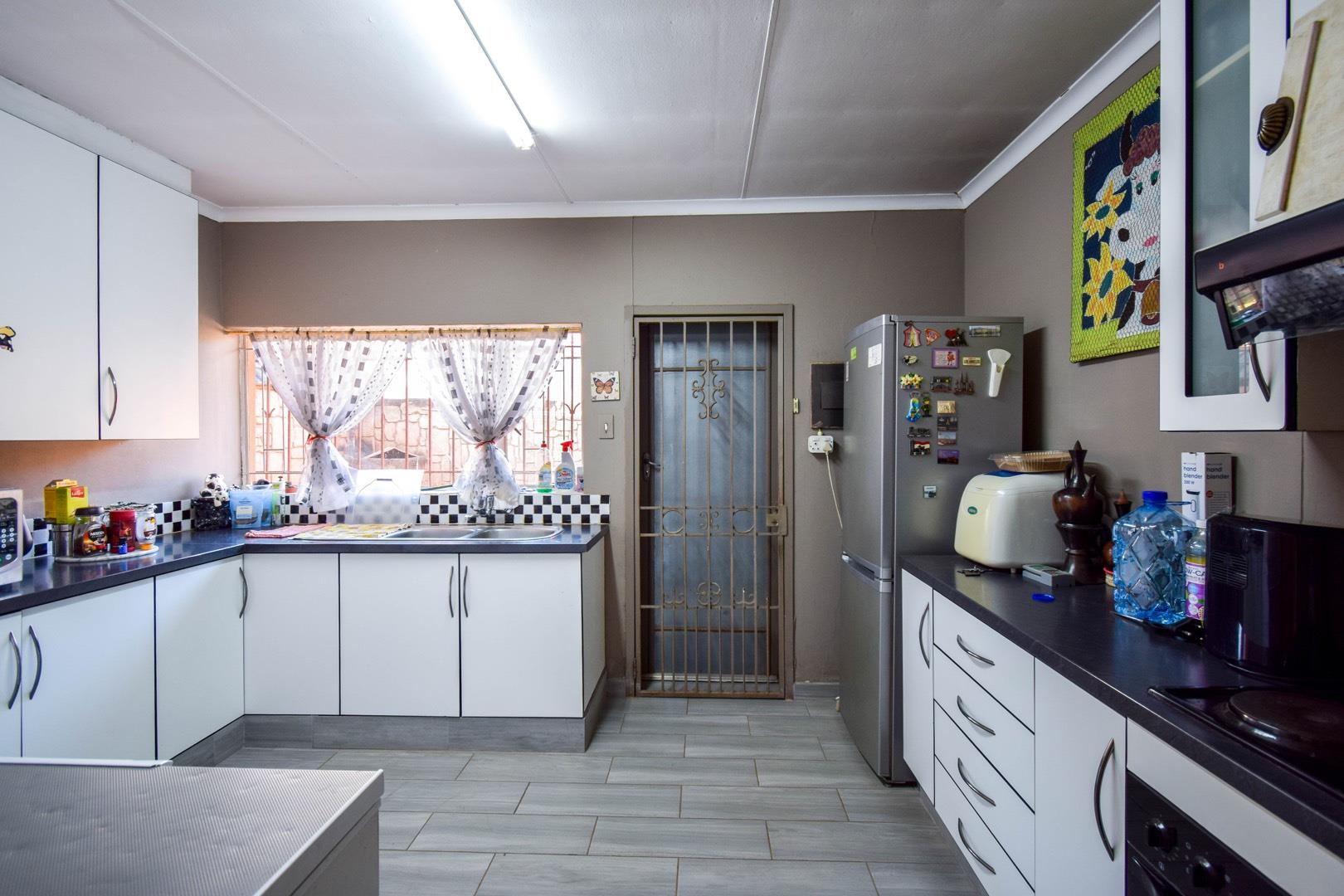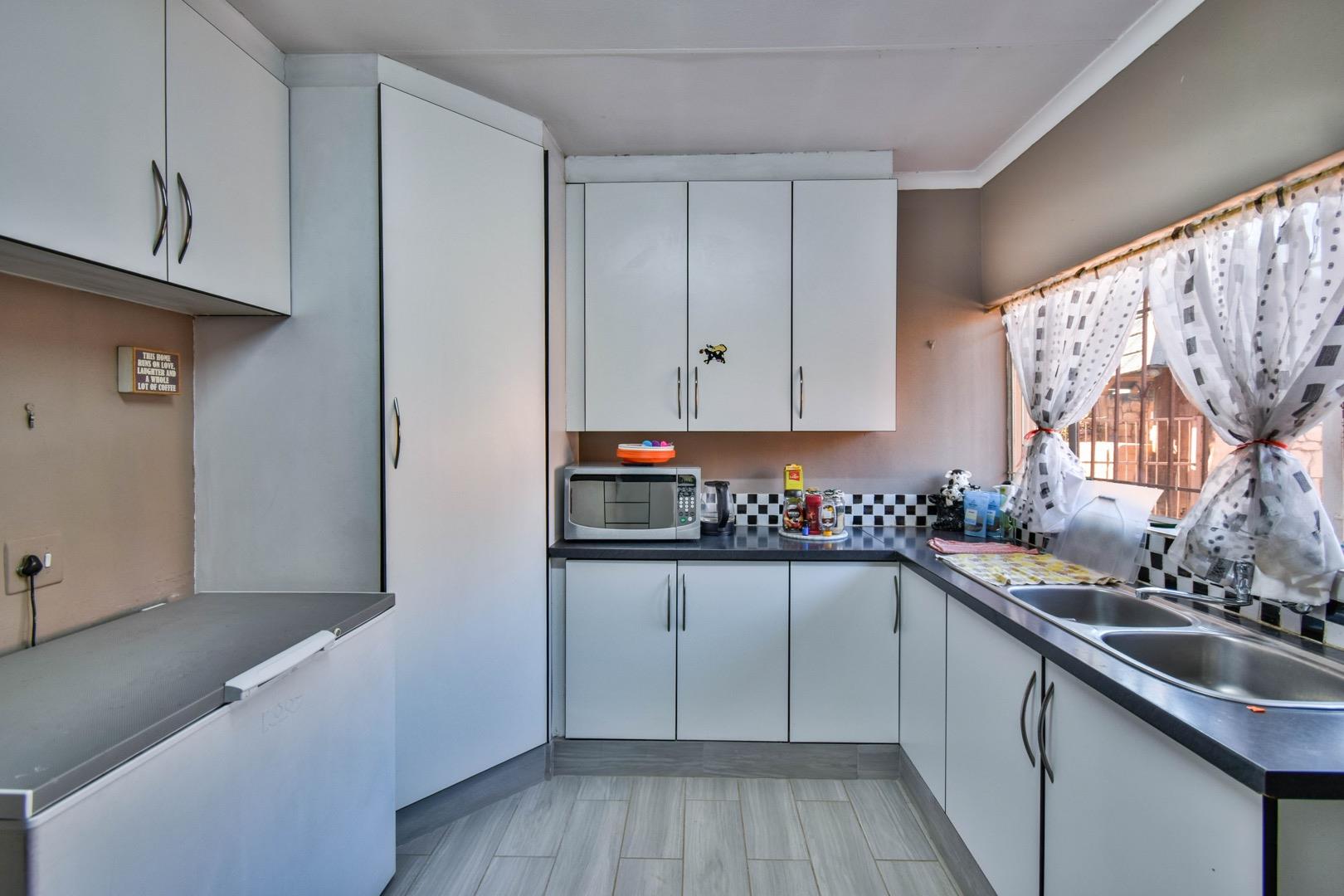 -Kitchen with built-in cupboards, pantry, single fridge space and chest freezer space