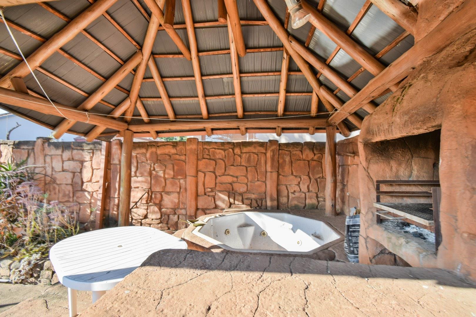 The home has a proper solar system (10KW inverter, 3 batteries and 24 panels) as well as a borehole!