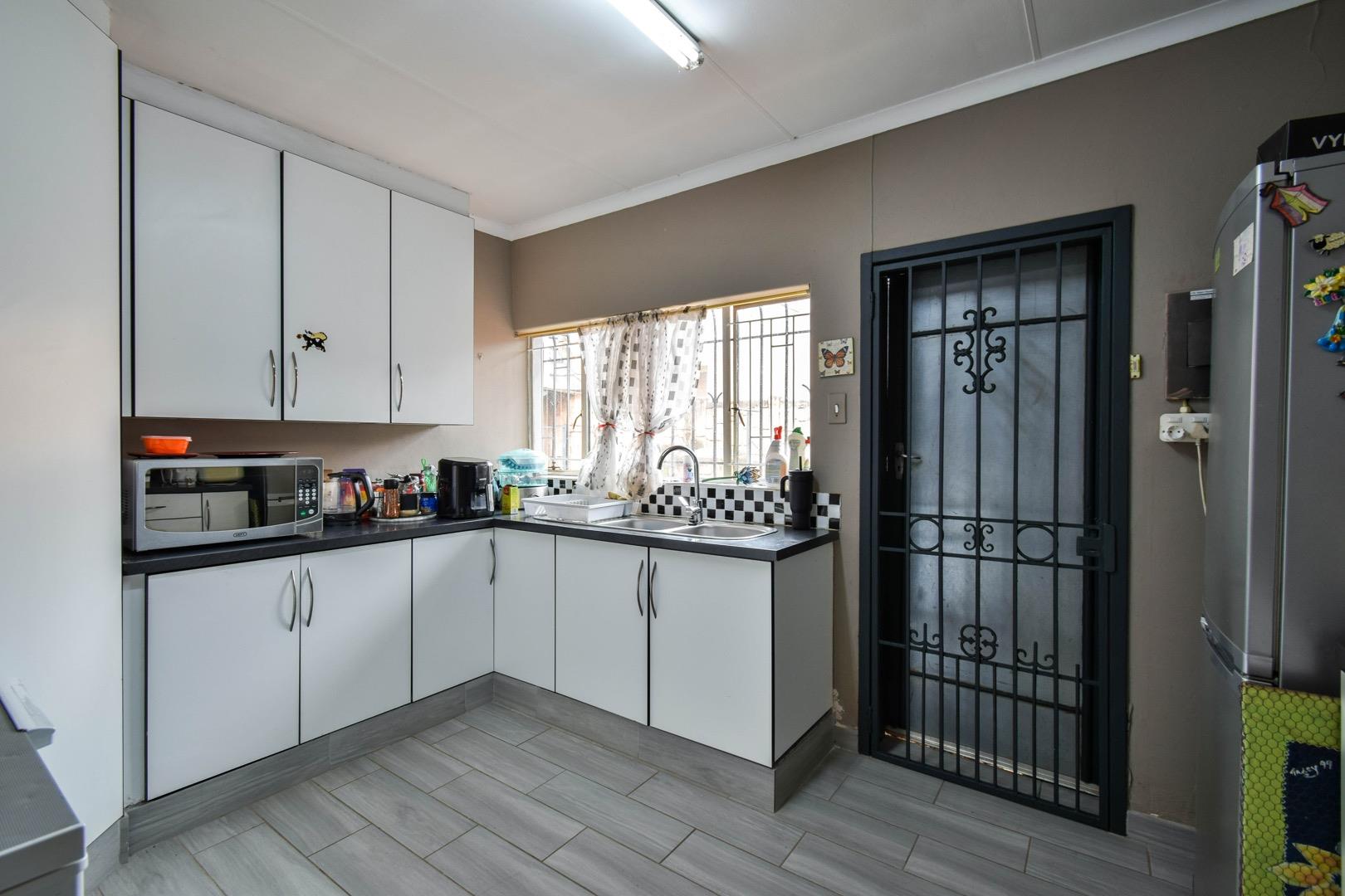 -Kitchen with built-in cupboards, pantry, single fridge space and chest freezer space