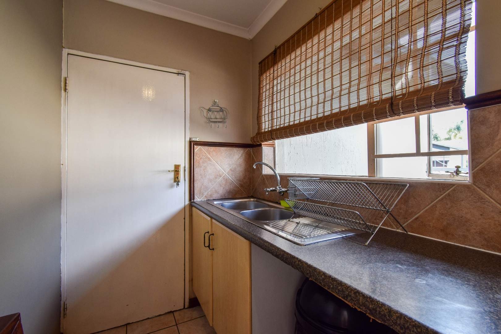 -Kitchen with ample cupboards, breakfast nook, pantry and a separate scullery with three appliance spaces