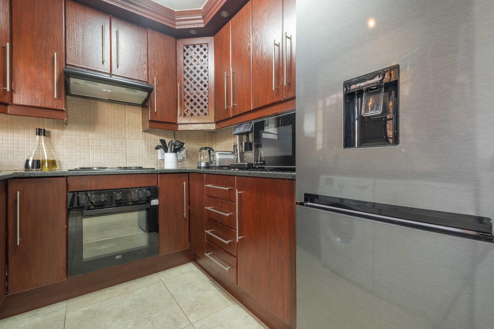 -Neat kitchen with ample cupboards, granite counter tops, two appliance spaces and a single fridge space